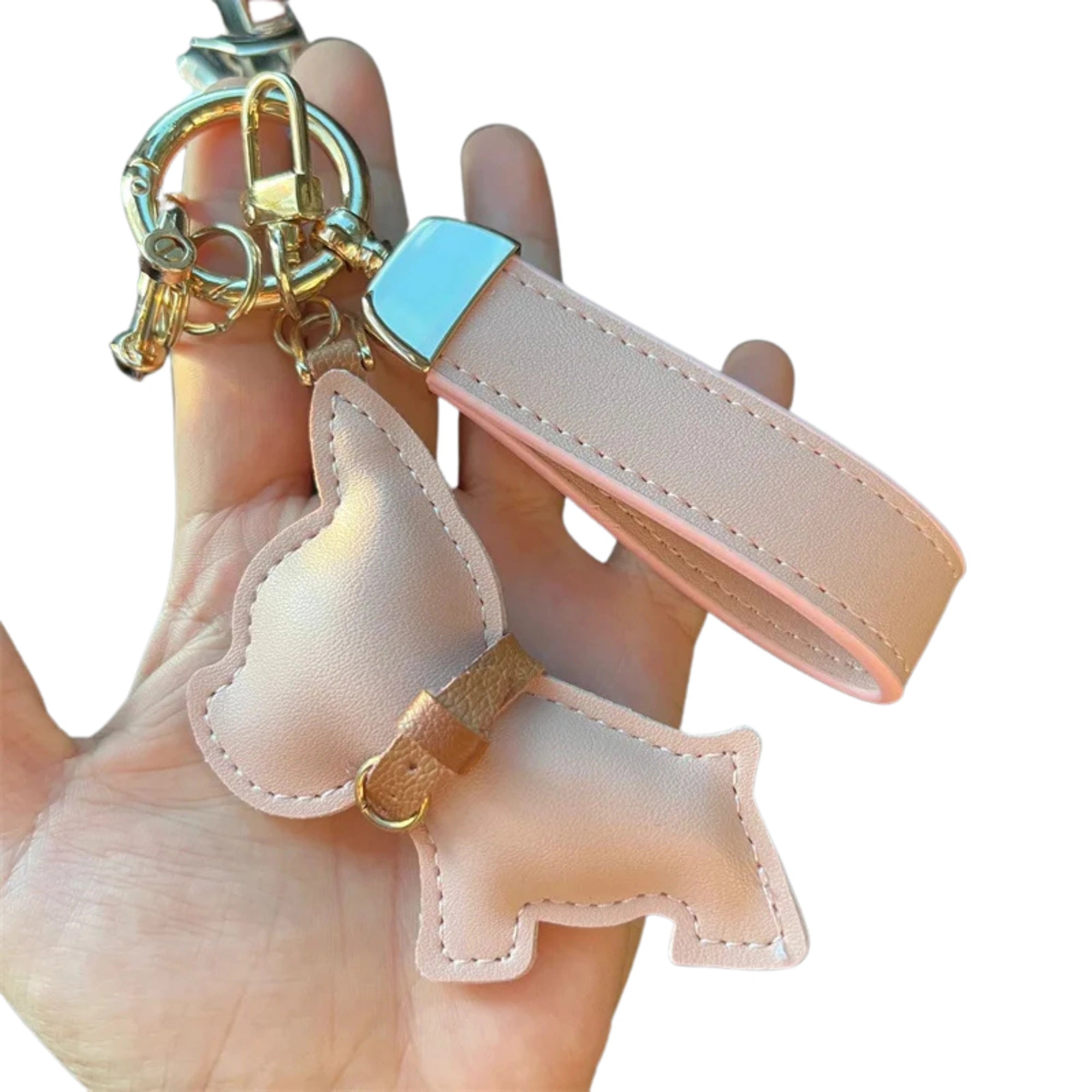 Leren autosleutelhanger met schattige Fadou hond | Creatief cadeau voor koppels | Sleutelhanger en tassenhanger | Verjaardagscadeau | Zink legering | Unisex accessoire