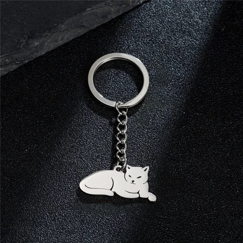 Sleutelhanger katten | Schattige katten hanger van roestvrij staal | Creatief dieraccessoire voor dames | Sleutelhanger voor auto, tas en portemonnee | Gift idee