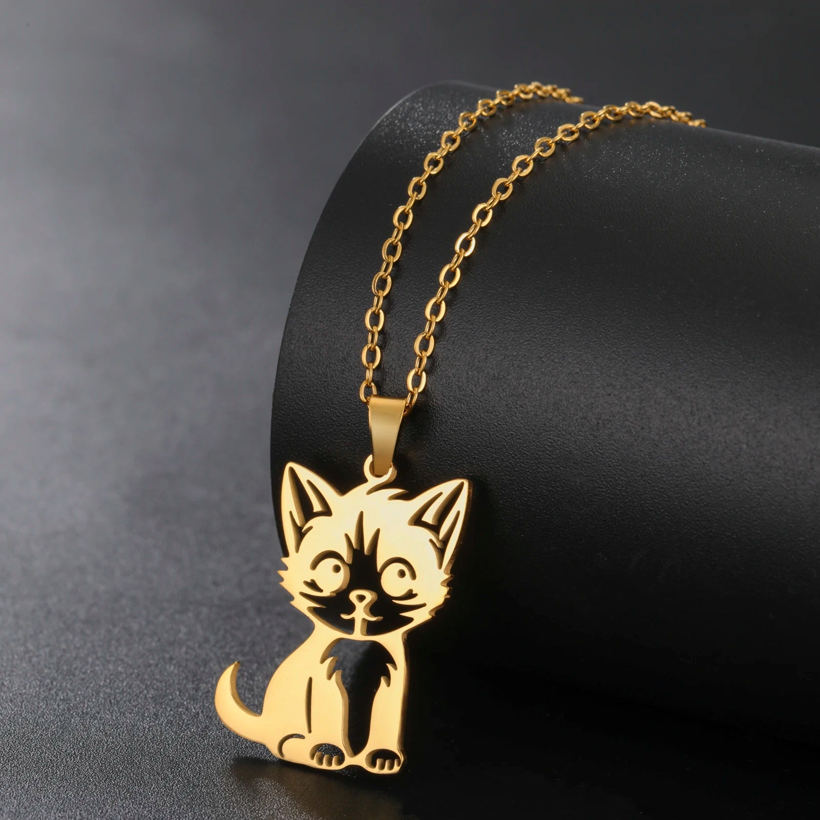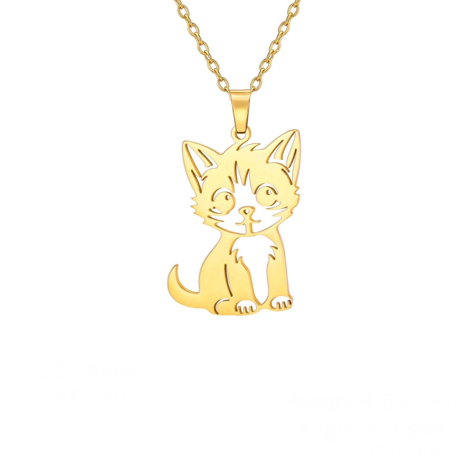 Kattenhanger ketting dames | Roestvrijstalen sieraden | Schattige katten dierenhanger | Trendy halsketting | Cadeau voor kattenliefhebbers | Goud & staal | Jeshayuan
