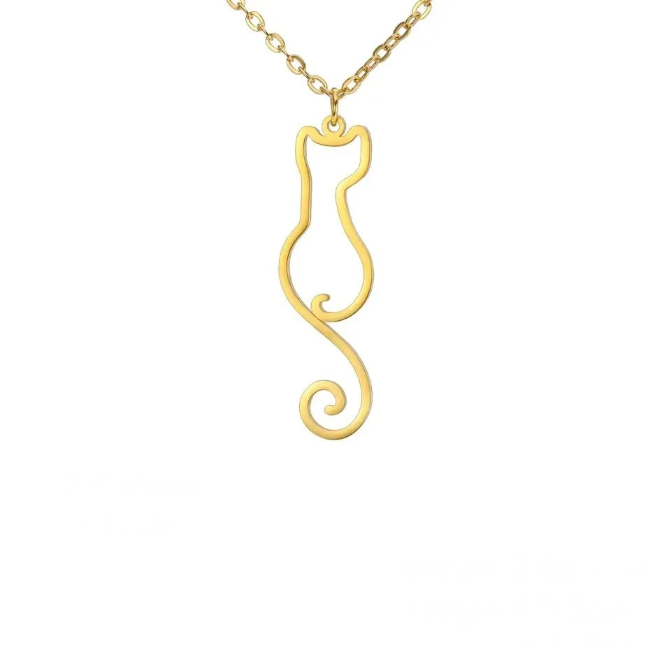 De modieuze ketting met kattenhanger voegt een speels en stijlvol element toe aan je look. De hanger is gemaakt van hoogwaardig roestvrij staal, wat zorgt voor duurzaamheid en een blijvende glans. De kittenvormige hanger biedt een vrolijke touch aan iedere outfit en is verkrijgbaar in goudkleur en staal. Geschikt voor feestjes, speciale gelegenheden of als cadeau voor een kattenliefhebber.
