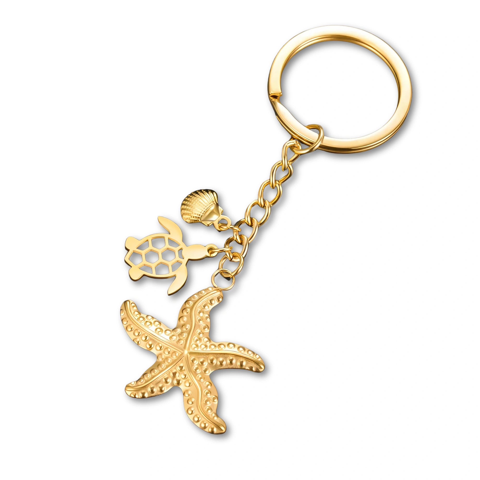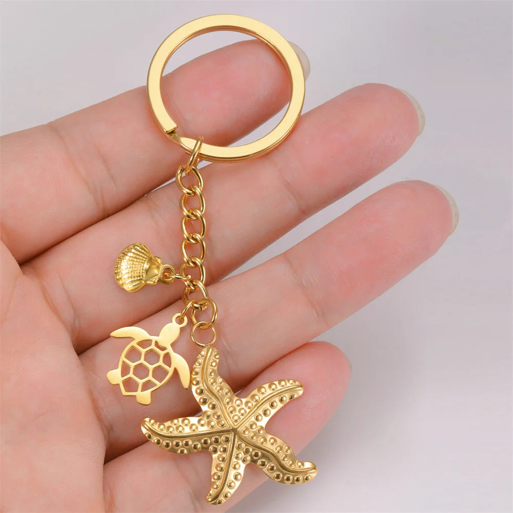 Sleutelhanger oceaan thema | Schildpad, zeester & schelp hanger | RVS | Trendy sleutelhanger voor tas, rugzak of sleutelbos | Zomercadeau strandliefhebber