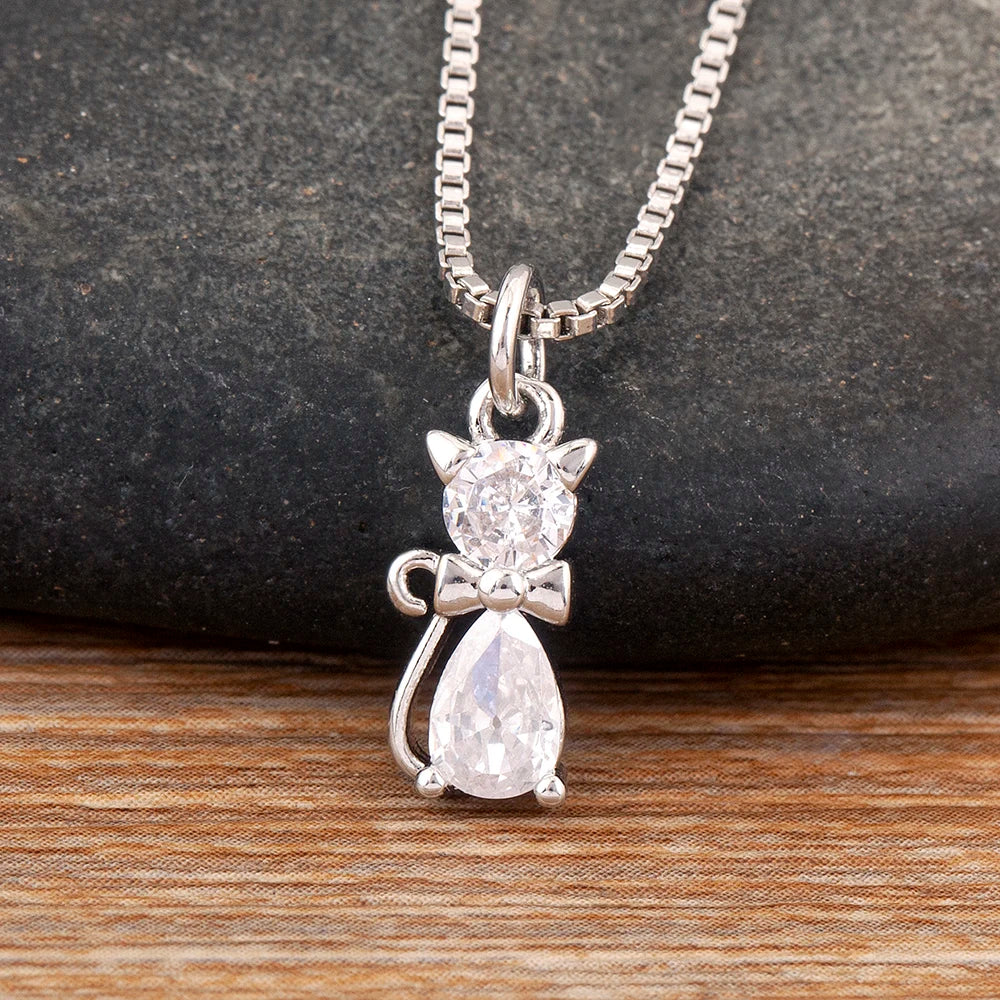 • Katten hanger bezet met AAA zirconia steentjes, beschikbaar in goud of zilver.