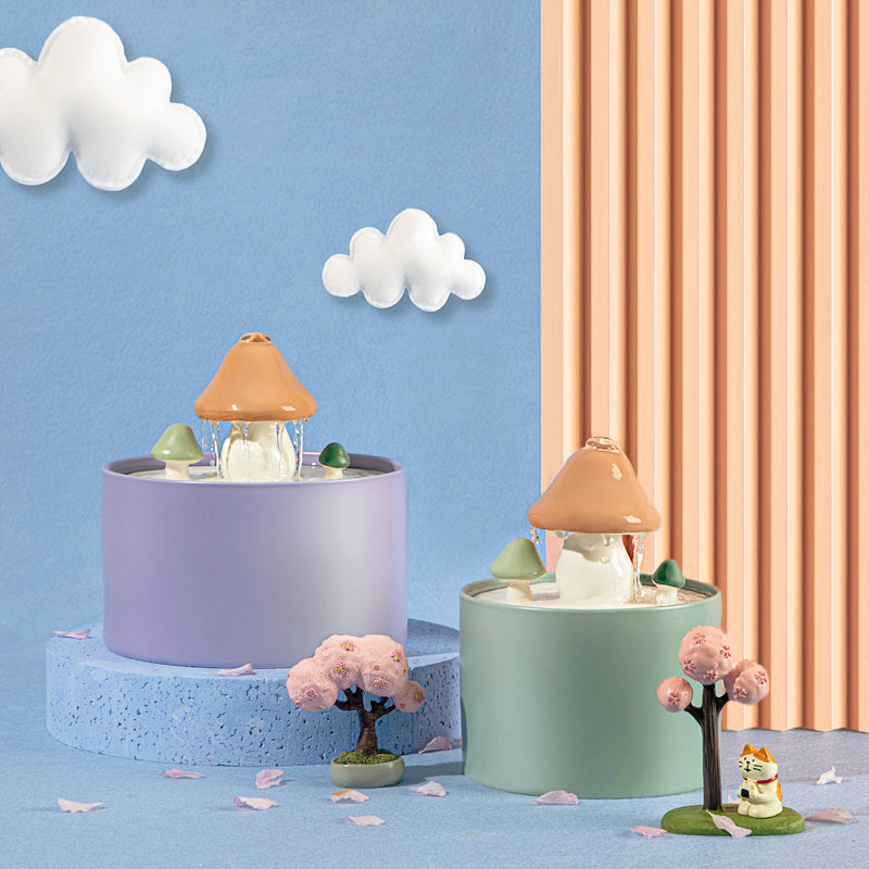 Stille Keramische Kattenfontein Paddenstoelvorm | Drinkwatersysteem met Vijfvoudige Filtratie en Grote Capaciteit | Geschikt voor Katten en Kleine Honden