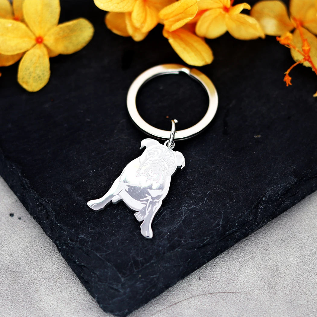 Geef je sleutelbos een vrolijke twist met deze bulldog sleutelhanger. Gemaakt van duurzaam roestvrij staal en verkrijgbaar in goud of zilver, geschikt voor hondenliefhebbers en als cadeau voor zowel dames als heren. Het cartoon-ontwerp valt op, en de optie voor naamgravure biedt een persoonlijke touch. De stevige O-vormige sluiting zorgt ervoor dat je sleutels veilig op hun plek blijven.