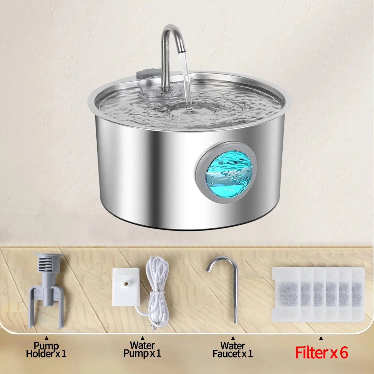 RVS Kattenfontein 3.2L met Ingebouwd Filtersysteem en Ultra Stille Waterpomp voor Huisdieren