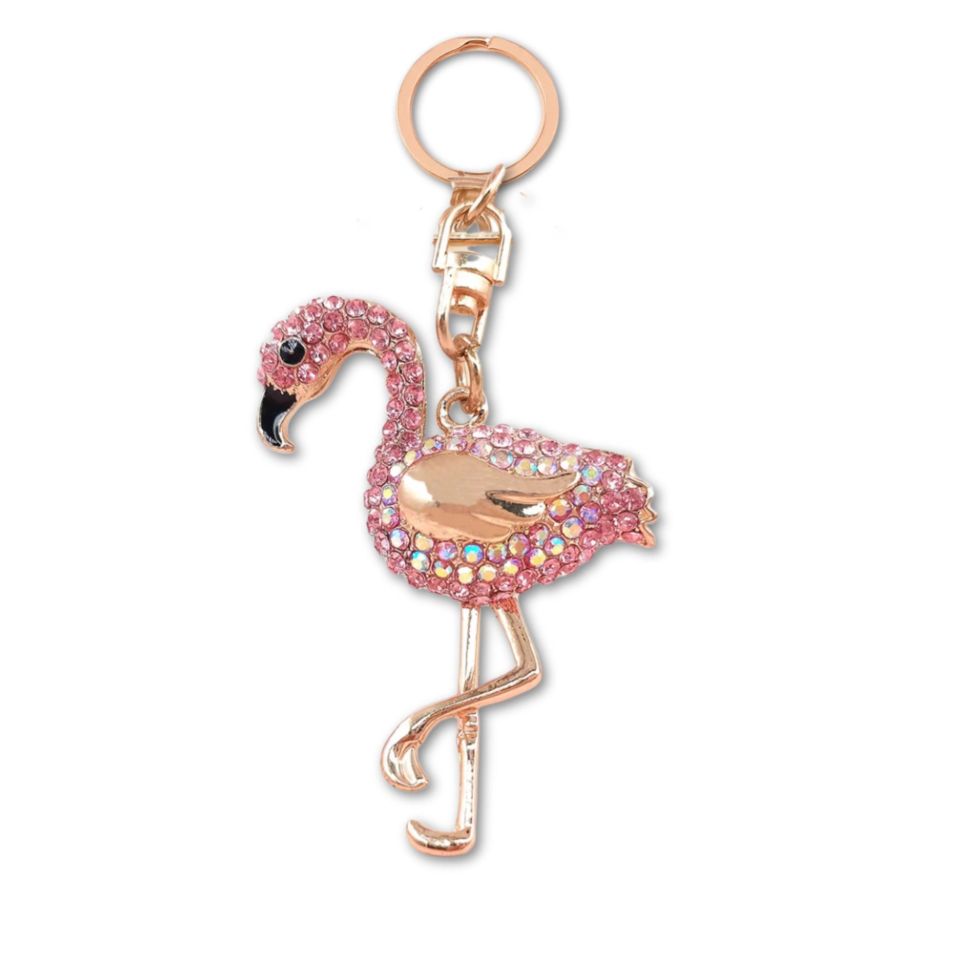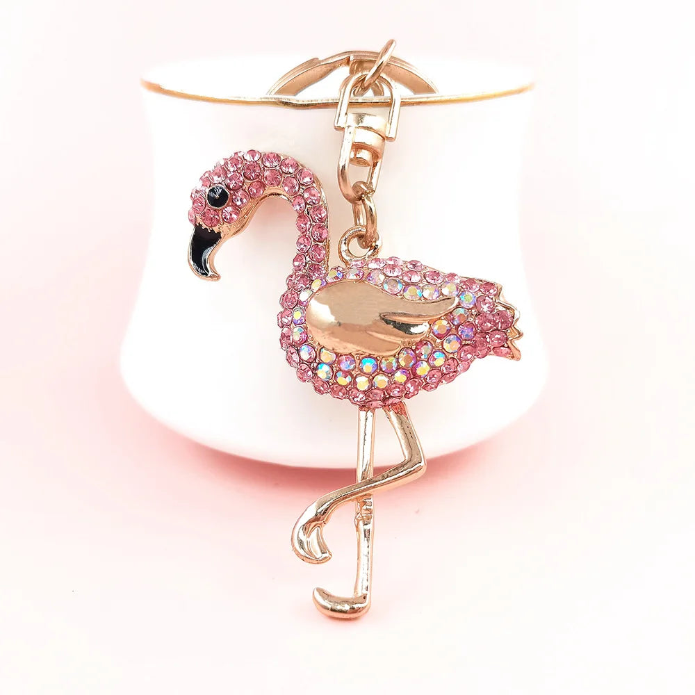 Sleutelhanger Flamingo met Strass Steentjes | Schattige Dieren Sleutelhanger voor Auto, Telefoon of Tas | Metalen Keyring | Cadeau voor Vrouwen & Meisjes | 12,5x5cm | Fashion Accessoire
