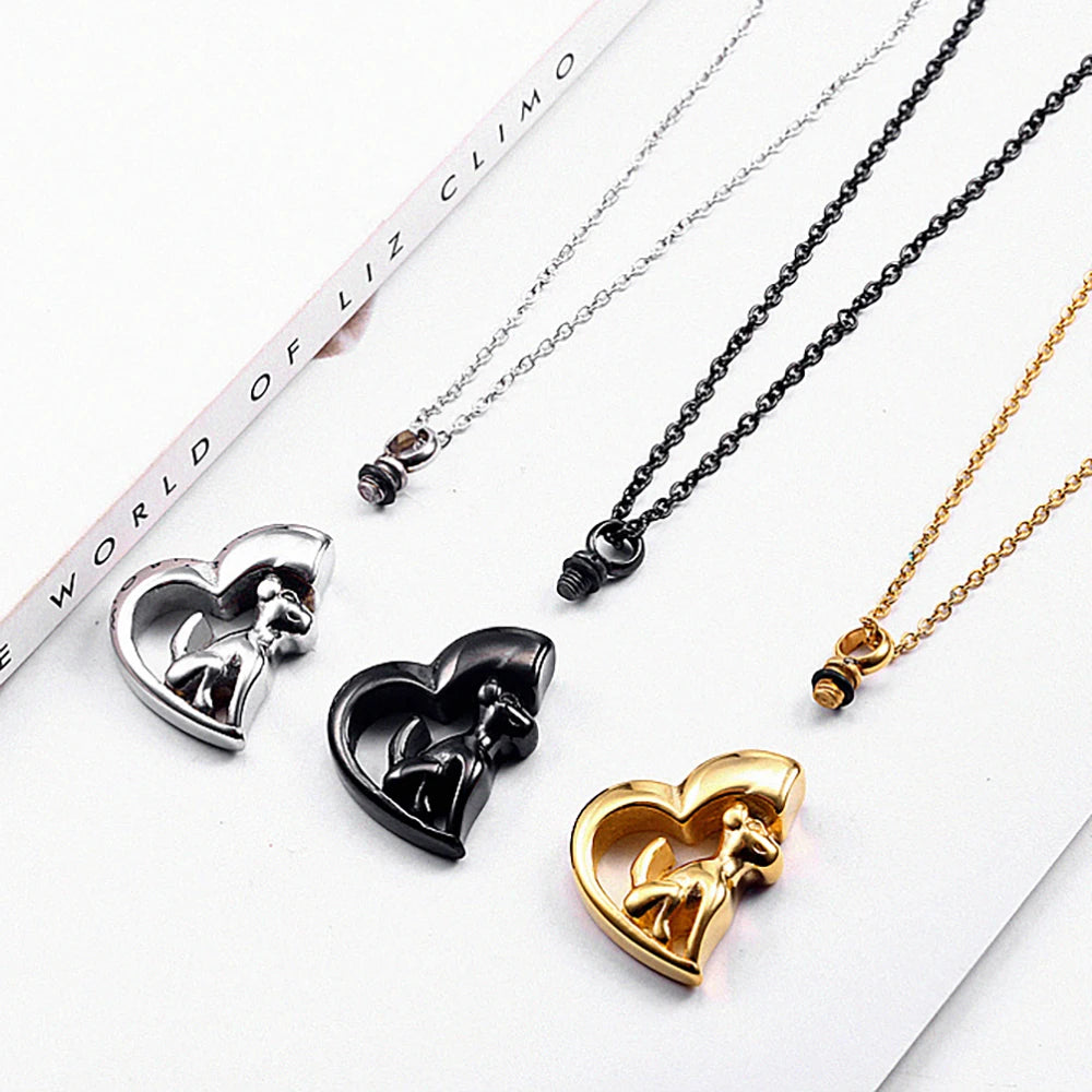 RVS honden urn ketting | Hartvormige assieraad hanger | Dieren herinneringssieraad | Unisex | Zilver goud zwart | 50cm | Cadeau